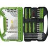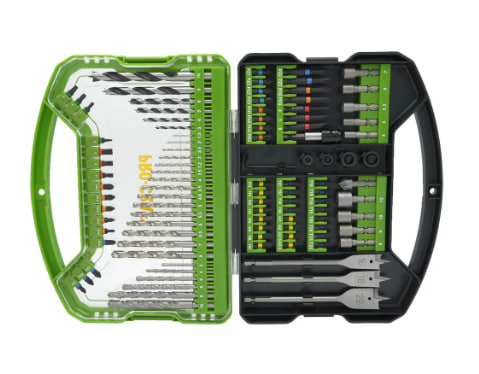 - Високоякісна сталь S2. Всі свердла та біти в наборі виготовлені зі сталі марки S2, яка вважається однією з найкращих для подібних інструментів. Цей матеріал відрізняється високою міцністю та зносостійкістю, що дозволяє використовувати їх навіть при високих навантаженнях.