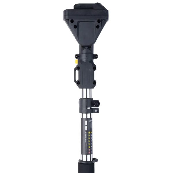 Модель оснащена поворотною головою, яка дозволяє змінювати кут нахилу інструмента без перестановки подовжувача. Акумуляторне живлення забезпечує повну автономність, а невелика вага всієї конструкції робить інструмент зручним для тривалого використання без зайвого навантаження на руки.