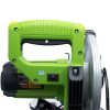 - Висока потужність та надійність. З потужністю 1400 Вт пила розвиває холостий хід 4900 об/хв, що забезпечує рівний різ навіть у найщільніших породах дерева та полімерних композитах.