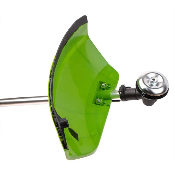 Швидкість холостого ходу в 5000 об/хв та діаметр косіння до 420 мм дозволяють ефективно обробляти як газони, так і ділянки з густою травою та дрібними чагарниками. Тример легко справляється з рослинністю різної щільності та висоти.