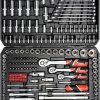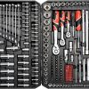 Профессиональный набор инструментов предназначен для специализированных работ по обслуживанию автомобилей. Большинство инструментов изготовлены из прочной хром-ванадиевой (CrV) стали. Этот набор позволяет выполнять работы, связанные с откручиванием и закручиванием резьбовых соединений различных размеров, а также требующие очень высоких нагрузок и точности.