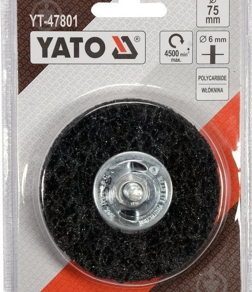 Щетка зачистная дисковая YATO : Ø=75 мм, со шпинделем Ø=6 мм. из нетканого волокна, к дрели
