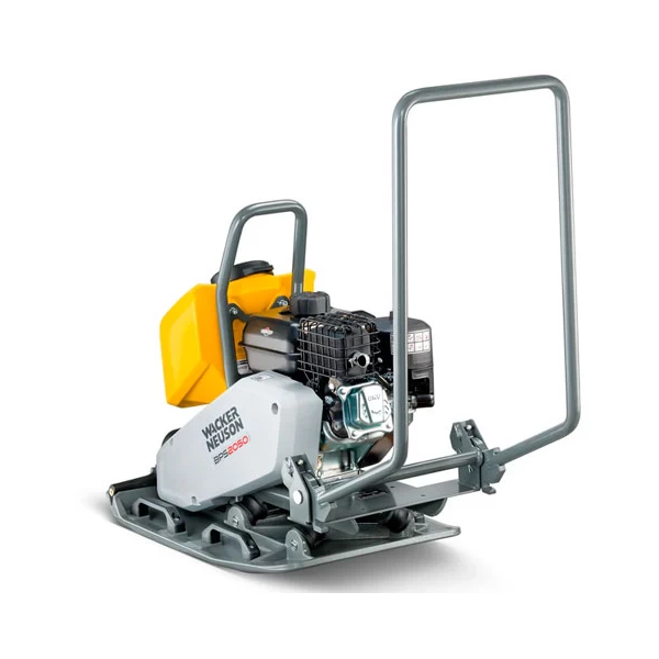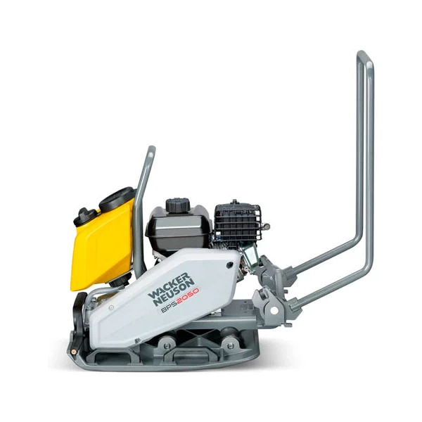 BPS2050Bw — профессиональная виброплита для уплотнения асфальта и несвязных грунтов. Модель совмещает высокую центробежную силу 20 кН с шириной подошвы 500 мм, а встроенная система орошения обеспечивает чистую, без следов. отделка у бордюров и краев покрытия.